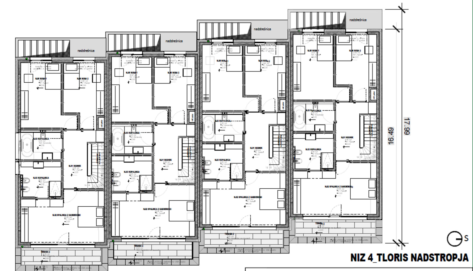 1. nadstropje: glavno spalnico z lastno kopalnico, dve do tri otroške sobe ter dodatna kopalnica.