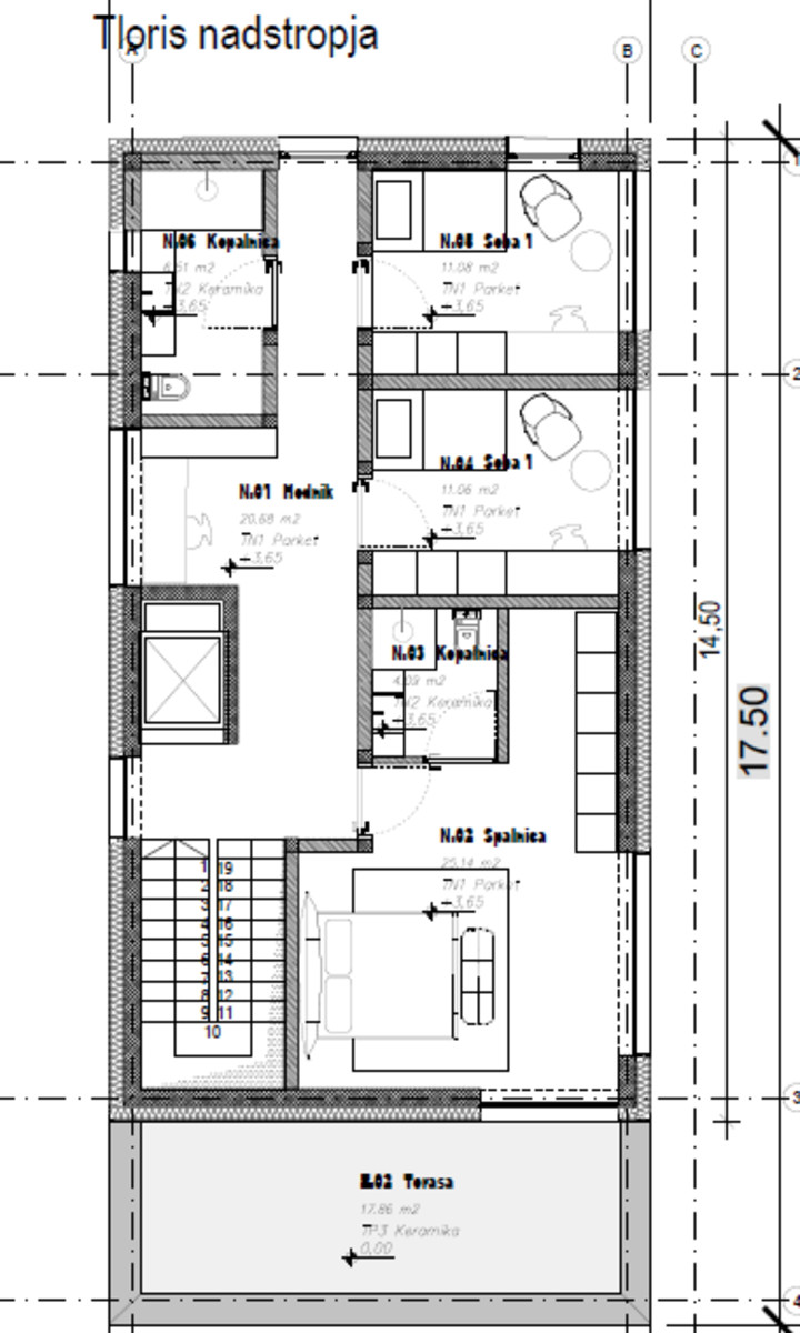 1. nadstropje: predvideni so spalni prostori, kopalnice, gardederoba, utility ter shramba.