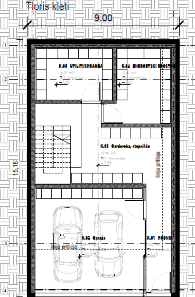 Pritličje: prostoren, odprt bivalni del s kuhinjo, jedilnico in dnevno sobo, ki se nadaljuje na zelenico in veliko teraso – idealen prostor za sproščanje in druženje na prostem. V pritličju so še hodnik, priročen dnevni WC, garderobna soba in garaža.